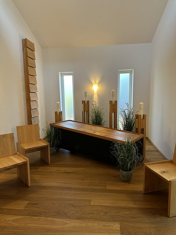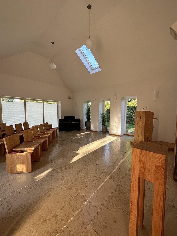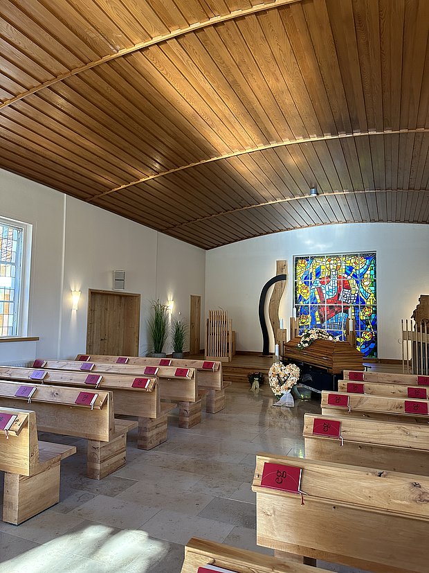 Unsere Große Kapelle bietet Platz für größere Trauerfeiern und Gottesdienste. Hier können Sie mit einer größeren Anzahl von Trauergästen zusammenkommen, um gemeinsam Abschied zu nehmen und Trost zu finden.