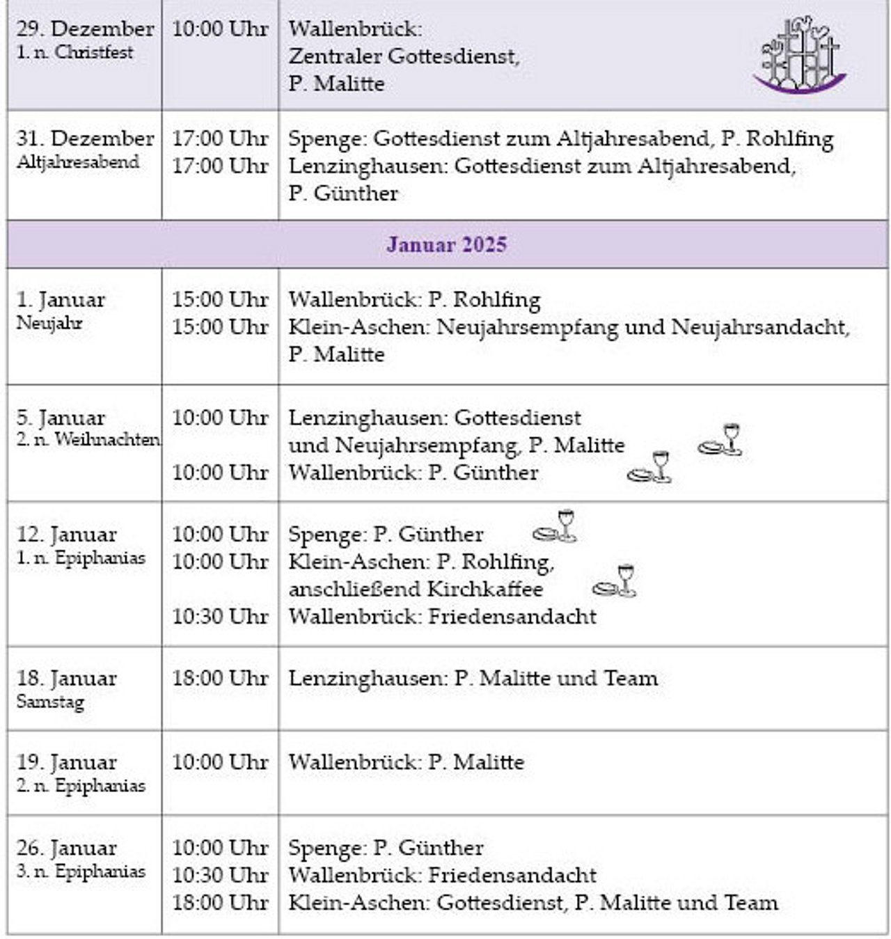 Gottesdienstkalender