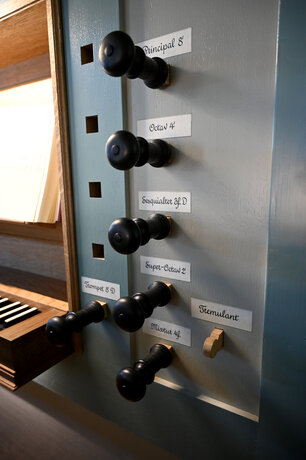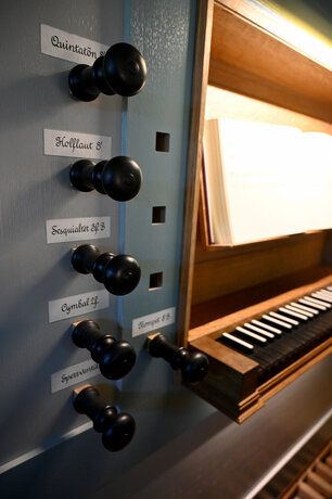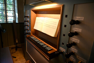 Die Barockorgel ist mitteltönig gestimmt mit 8 reinen Terzen (a=465 Hz)