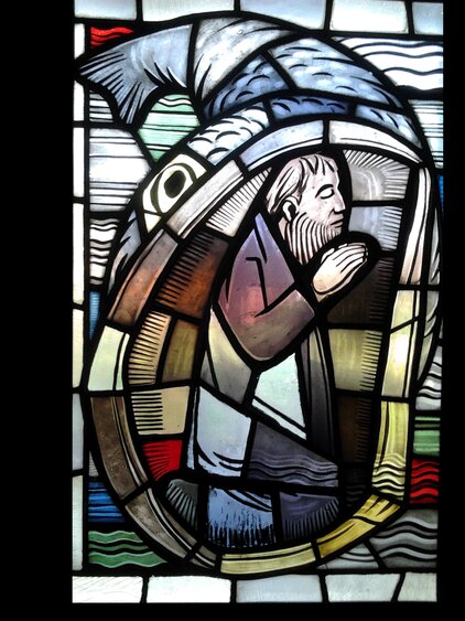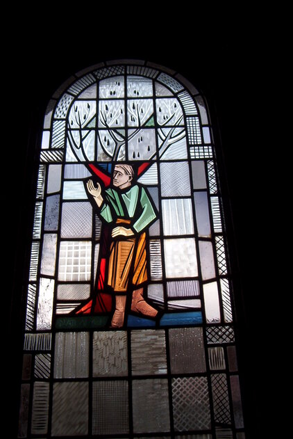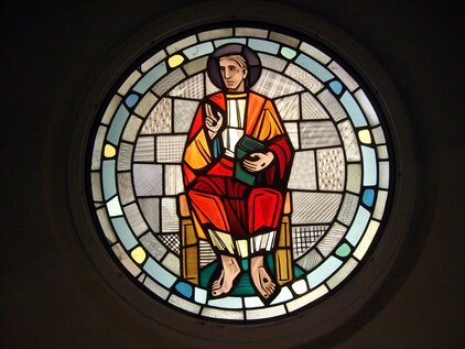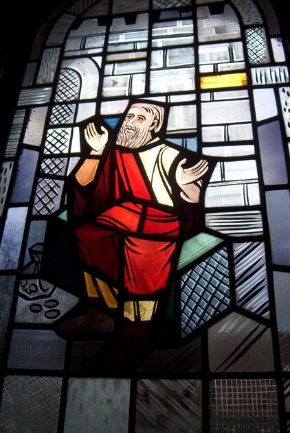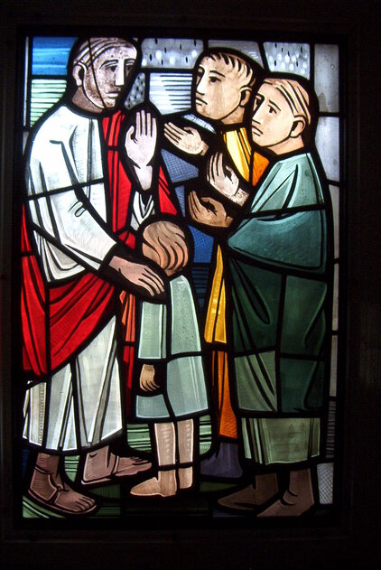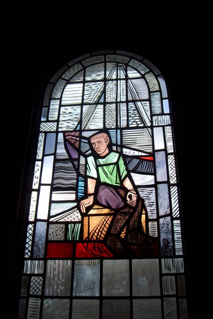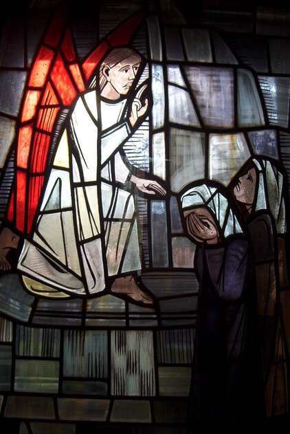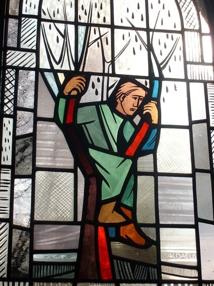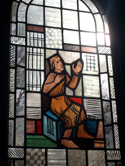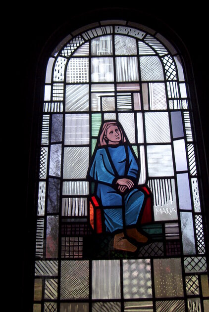 Glasfenster aus dem Jahre 1957 von Hilde Ferber mit Darstellungen aus dem Leben Jesu